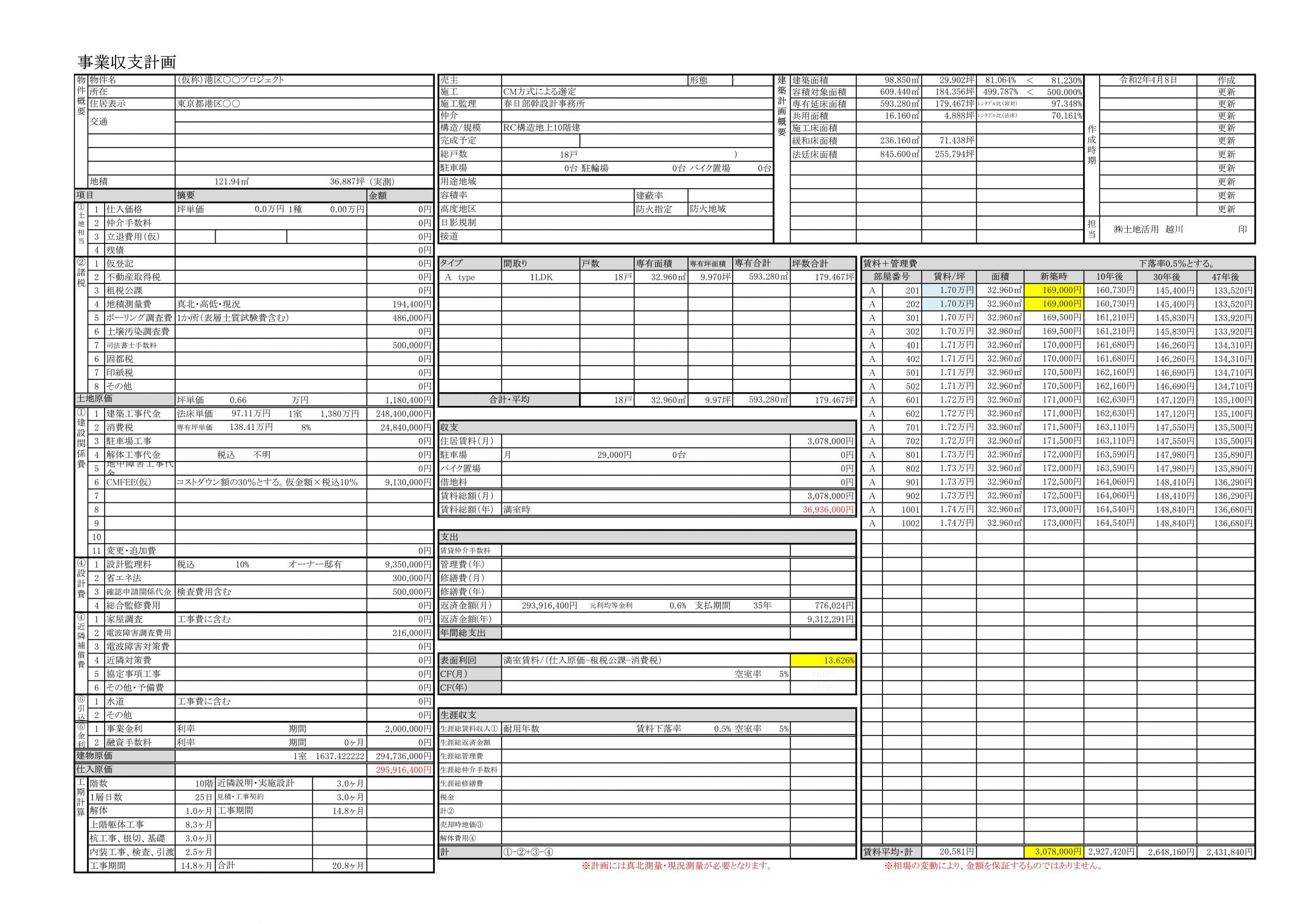 - 港区でのRC造新築収益性モデルと1種 ㈱土地活用の新築不動産投資 2020年4月8日