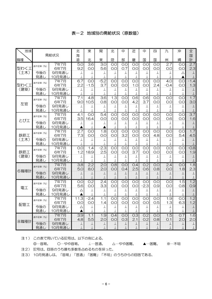 労働需給調査も引き続き関東、型枠・鉄筋は人余り継続