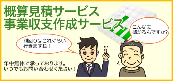 そして、出来上がったボリュームチェック図面について、株式会社土地活用のCM方式でやったら幾ら位で建つかという、「概算見積」を行います。
